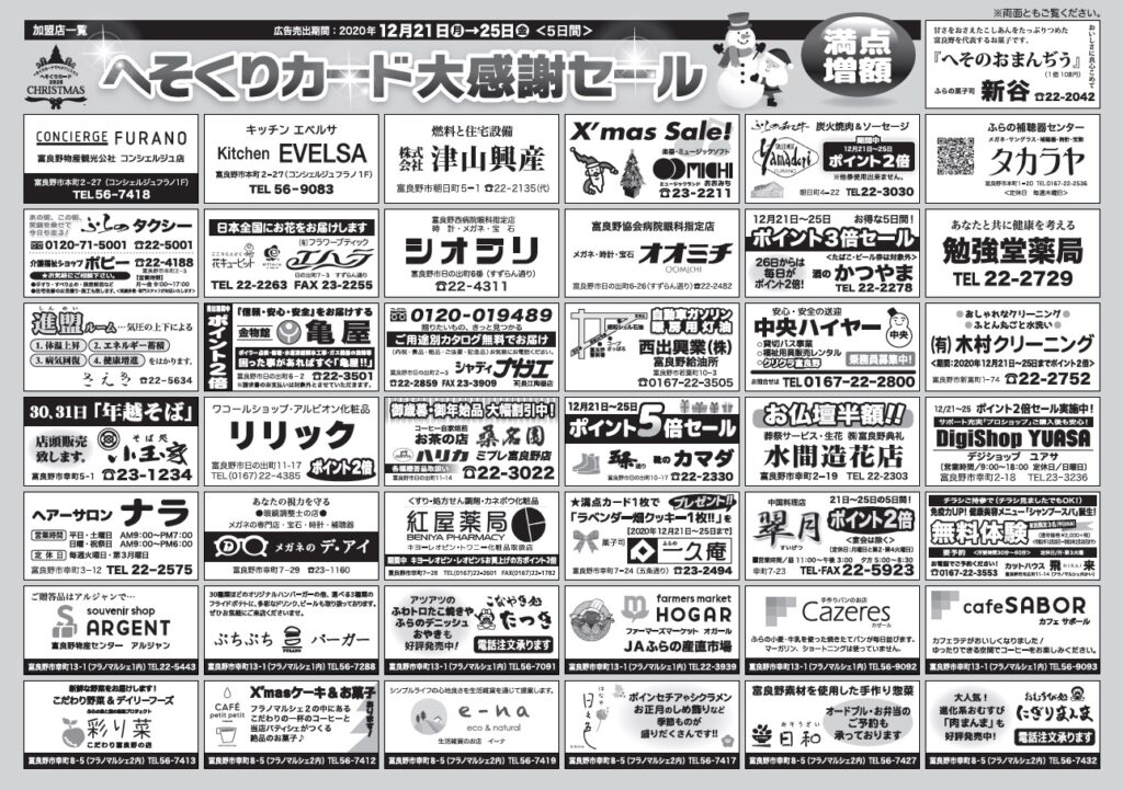ふらのへそくりカードの日頃のご愛顧を感謝して年末恒例の大感謝セールを実施します!