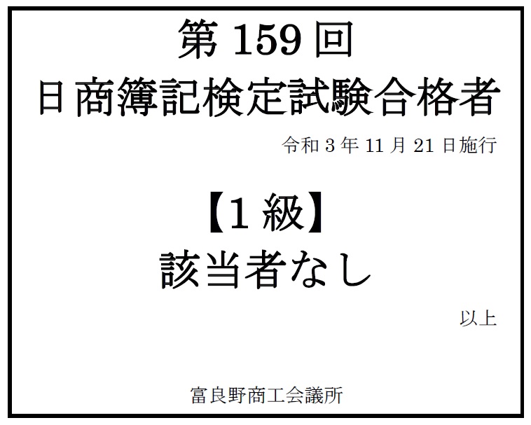 令和3年11月21日施行 日商簿記検定試験合格発表