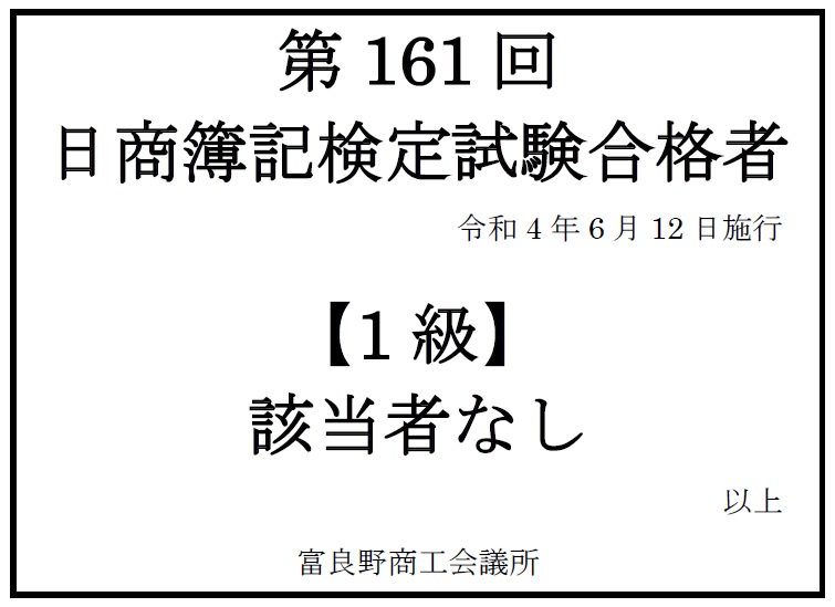 2022年8月1日 / 最終更新日 : 2022年7月22日 staff 検定 第161回 日商簿記検定試験合格発表(1級) 令和4年6月12日施行 第161回日商簿記検定試験合格発表 第161回簿記合格発表ダウンロード