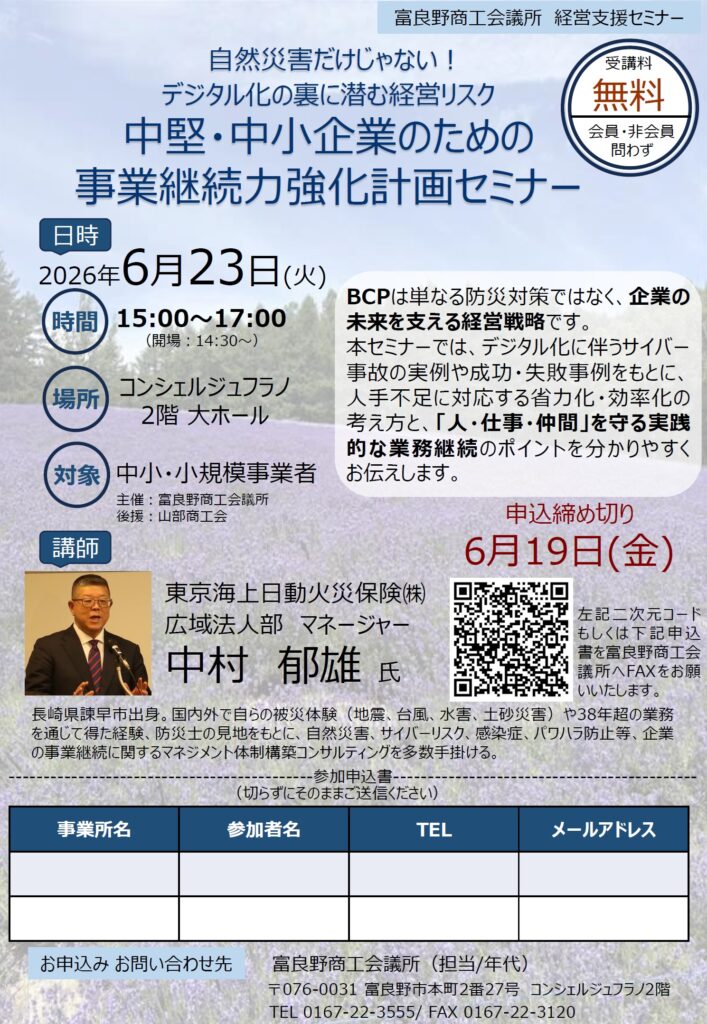 BCPは単なる防災対策ではなく、企業の未来を支える経営戦略です。本セミナーでは、デジタル化に伴うサーバー事故の実例や成功・失敗事例をもとに、人手不足に対応する省力化・効率化の考え方と、「人・仕事・仲間」を守る実践的な業務継続のポイントをわかりやすくお伝えします。